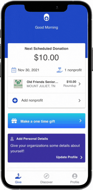 With RoundUp App you can donate to multiple nonprofits currently working in the United States. Whether you’re rounding up your purchases, giving monthly, or making one-time gifts you can manage all your yearly giving straight from our app.