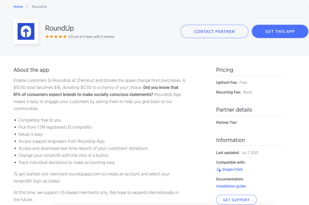 RoundUp at Checkout is designed to make it effortless for stores and e-commerce companies to enable customers to donate the spare change from their purchases to a nonprofit of your choice.