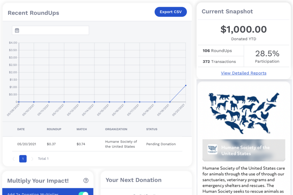 With RoundUp at Checkout your company can increase brand loyalty through matching donations or general charitable giving.