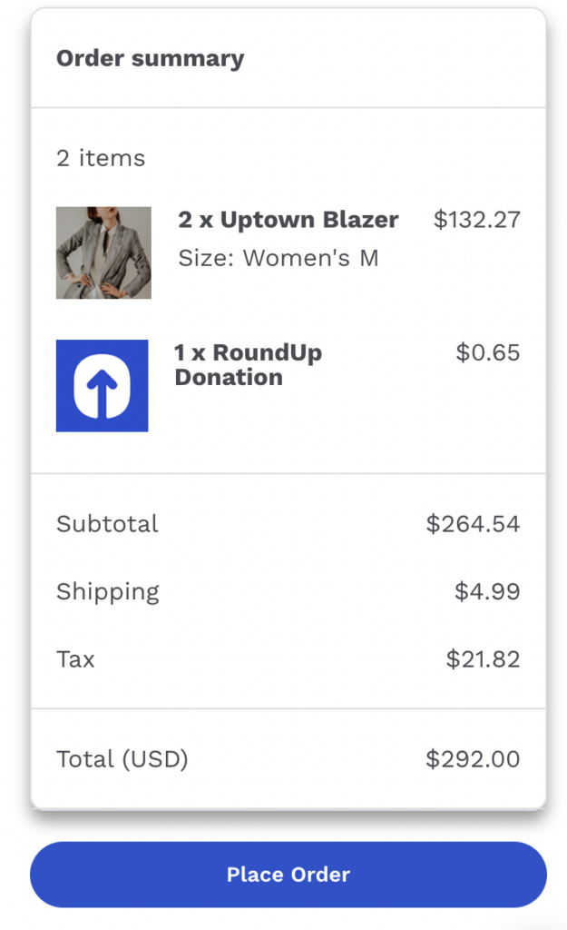 RoundUp at Checkout is an eCommerce software solution that adds a donation feature to the checkout page for online customers. Once the customer proceeds to checkout, they are offered the option to round up their transaction for charity.