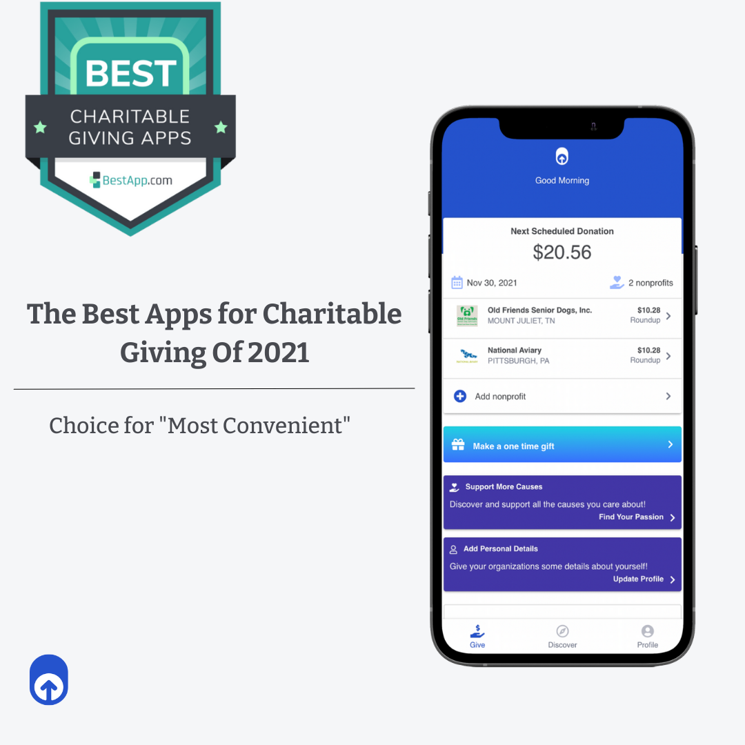 BestApp.com named RoundUp App as the “Most Convenient” charitable app of 2021! What sets RoundUp App apart from other options is the flexibility we offer: donors can choose to give one-time, monthly, or “round ups”. No matter the type of donor you are, we can make donating effortless! Glad the people over at Best App think so too!