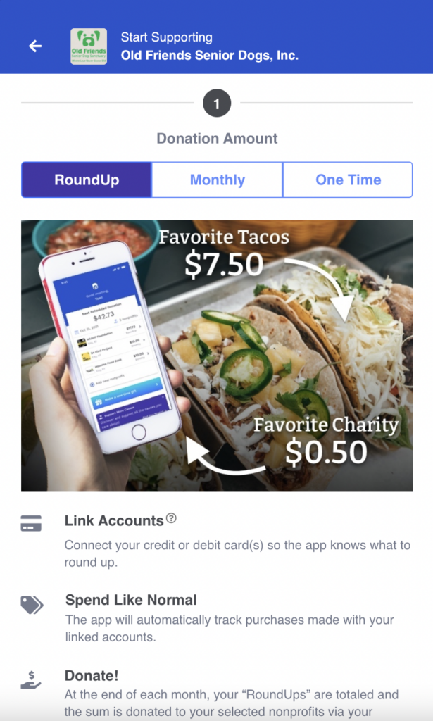 RoundUp App is completely free to use and connects you instantly to millions of nonprofits making change in the United States.